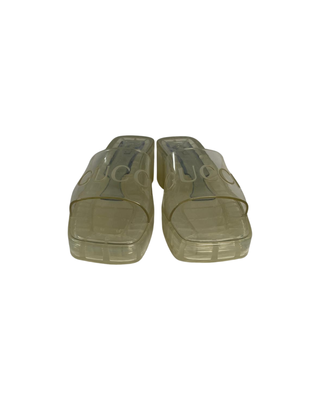 Playful yet unmistakably iconic, these Gucci Transparent Rubber Mules bring a modern edge to warm-weather styling. Crafted in glossy translucent rubber, they strike the perfect balance between statement and simplicity — effortlessly cool with a touch of nostalgic ‘90s influence.